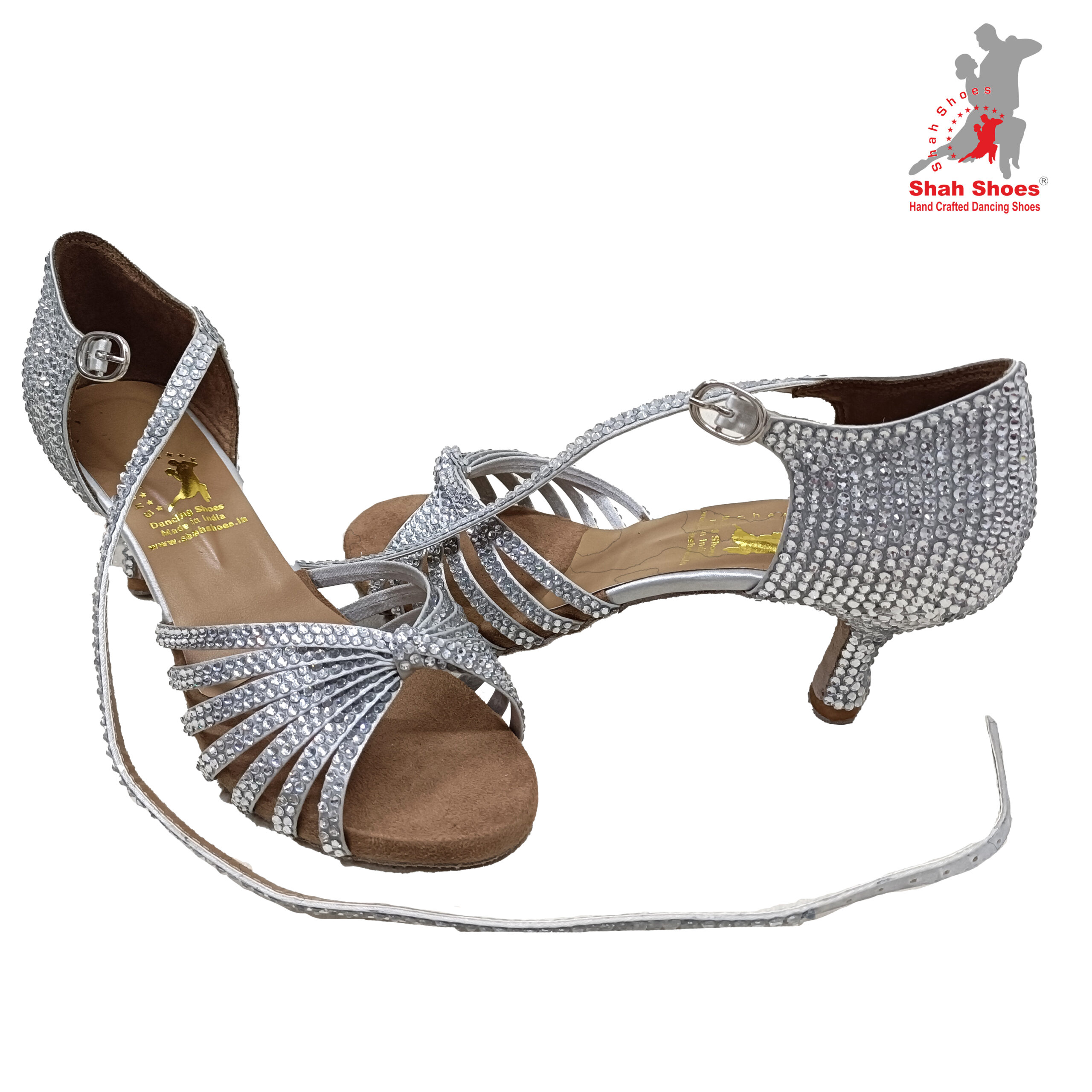 Dazzling Silver Latin Dance Sandals by Shah Shoes